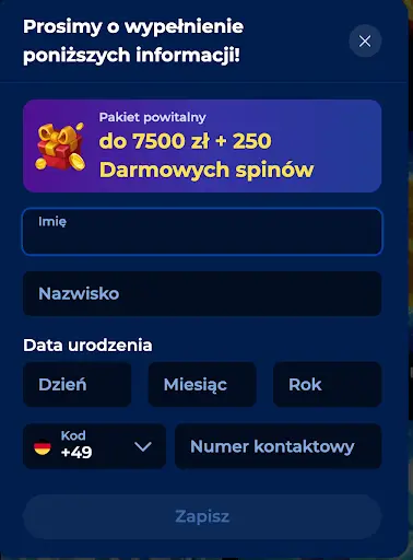 Na drugiej stronie wpisz kolejne wymagane dane: imię i nazwisko, datę urodzenia oraz numer telefonu. Kliknij „Zapisz”.