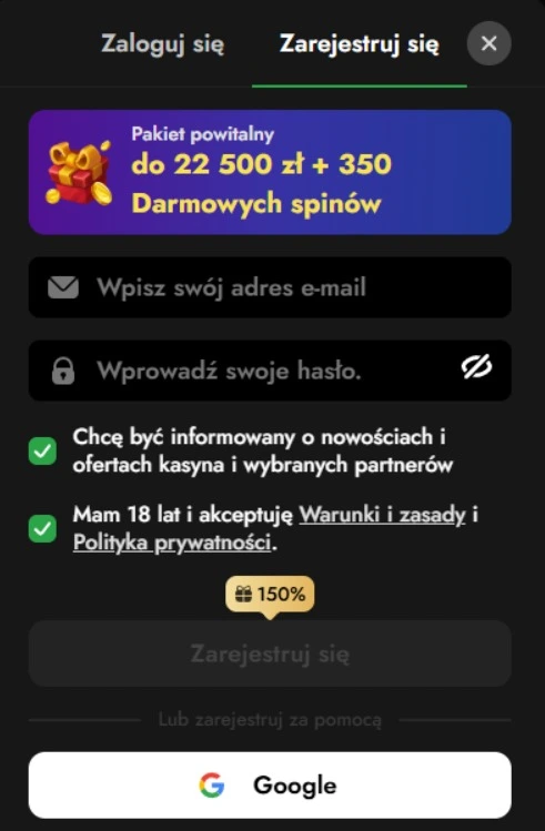 Alternatywną opcją rejestracji dla wypełniania danych w formularzu jest opcja szybkiego logowania z użyciem konta Google. Założenie konta w OscarSpin nic nie kosztuje. Jeśli kiedyś zmienisz zdanie, konto możesz bez problemu usunąć. Wystarczy skontaktować się z obsługą, a konsultant zajmie się zamknięciem konta i usunięciem Cię z bazy graczy.